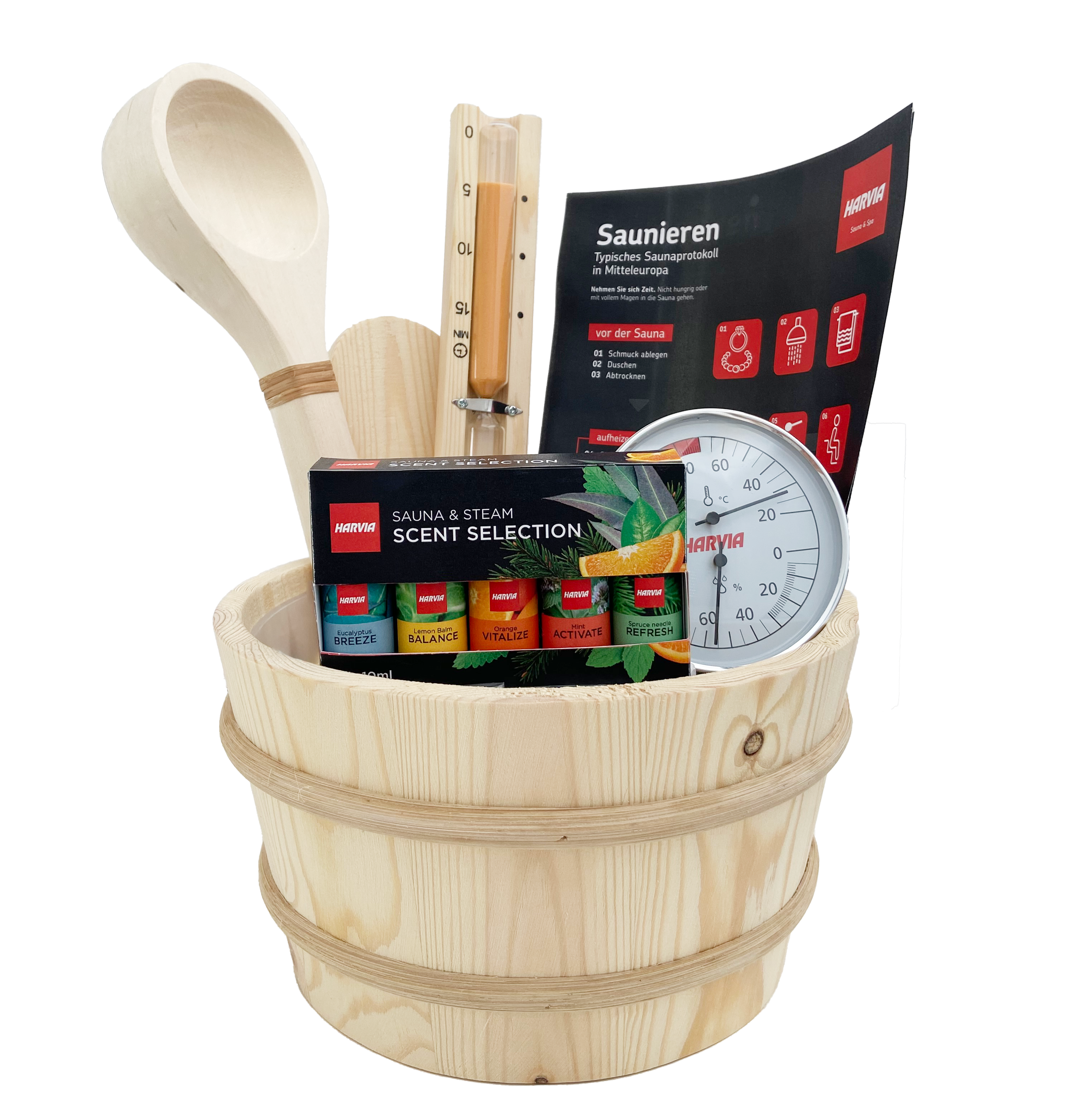 • Accessoires sauna : seaux, louches, sabliers, thermomètres-hygromètres, éclairage LED — pour créer l’ambiance nordique authentique.