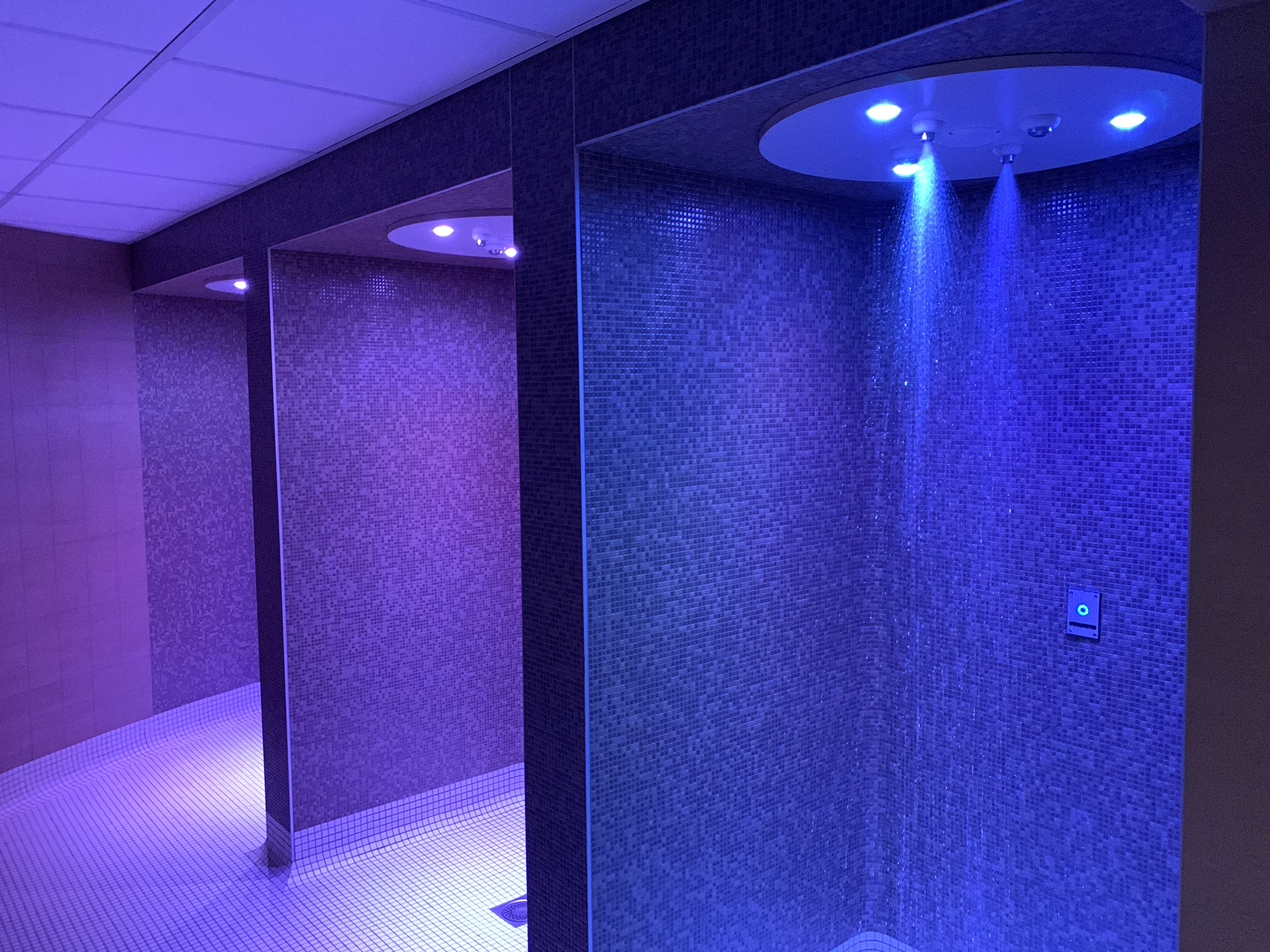 - Lumières colorées contrôlées par chromothérapie : couleurs pour stimuler relaxation (bleu) ou énergie (rouge/orange).